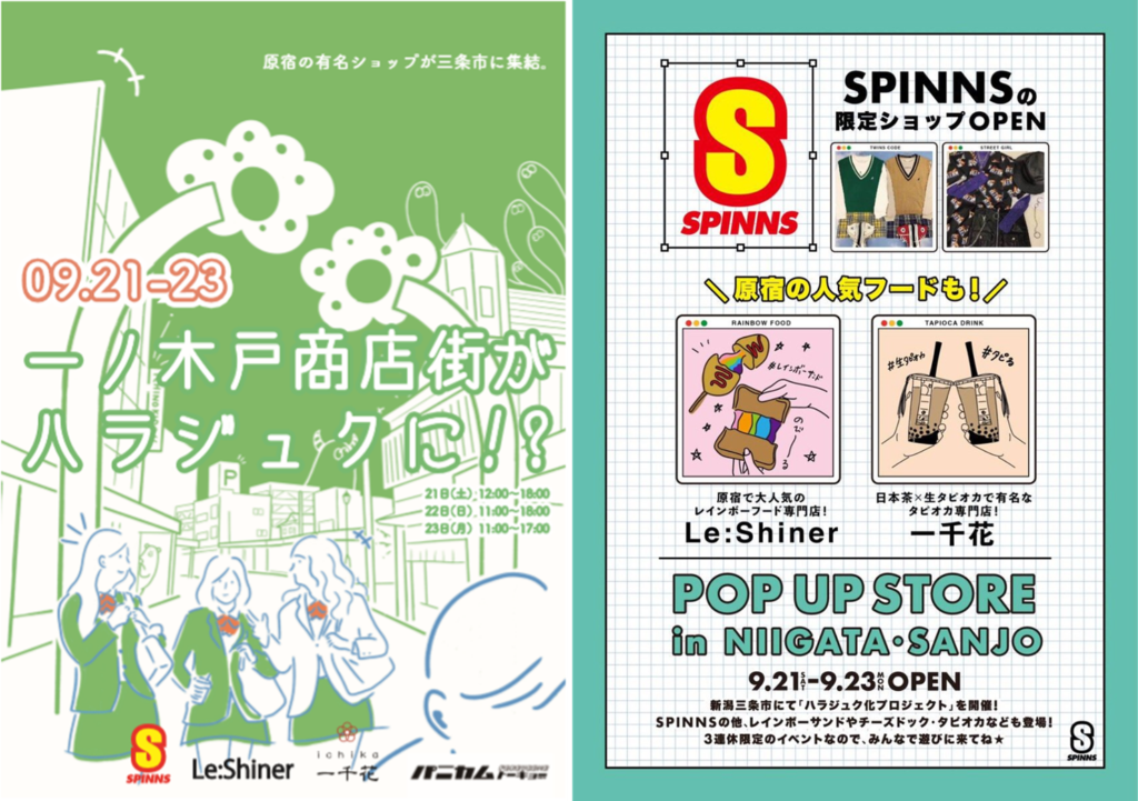 2019年9月21日(土)~23日(月)に新潟県三条市にある一ノ木戸商店街の空き店舗に原宿企業が出店!3日間のイベントを通して、お子さんから大人、お年寄りの方の方まで地元の方々に楽しんでいただきました!